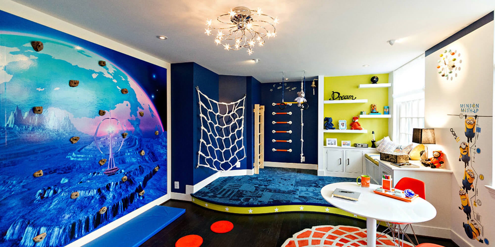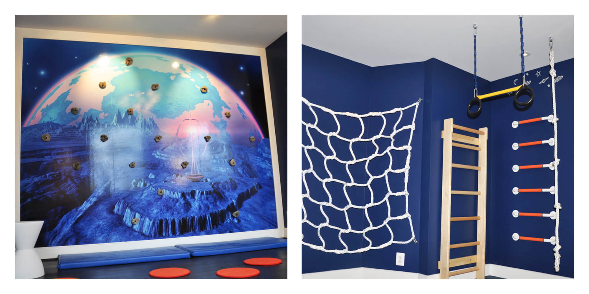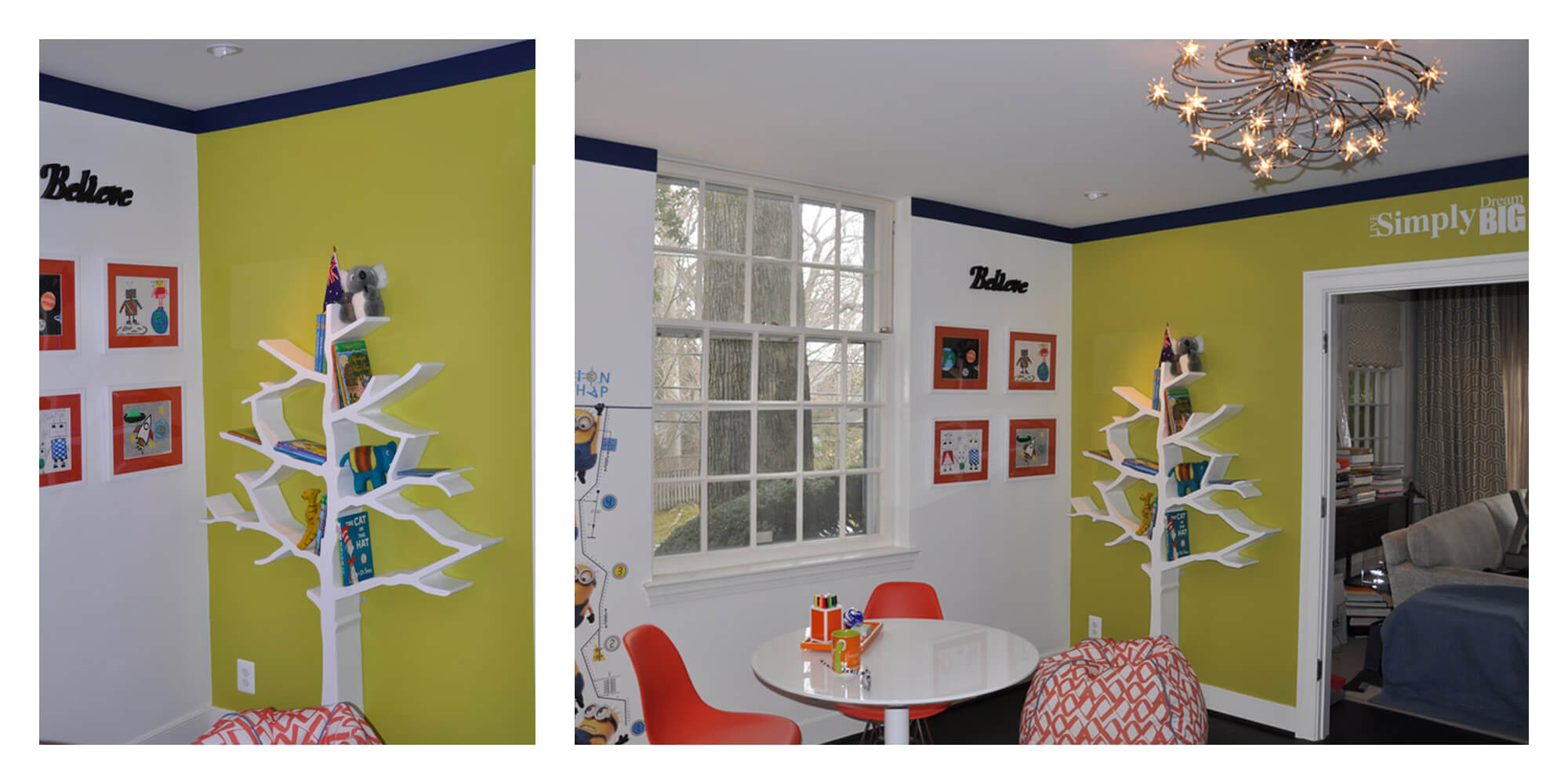 The playroom project aimed to instill a healthy lifestyle in children by creating an engaging space that promotes physical activity, wellness, and a break from technology. Challenges included removing an existing bathroom and addressing the impact of sedentary living. KVJ Designs led efforts to incorporate enjoyable solutions, combatting issues like constant screen exposure. The results showcase a multipurpose playroom, dynamic and versatile, encouraging active play with features like a climbing wall mural and exercise equipment. A vibrant color palette stimulates creativity, while the space offers opportunities for imaginative play, arts, and family activities. Ultimately, the playroom stands as a welcoming haven, promoting a balanced and harmonious lifestyle for children and families.