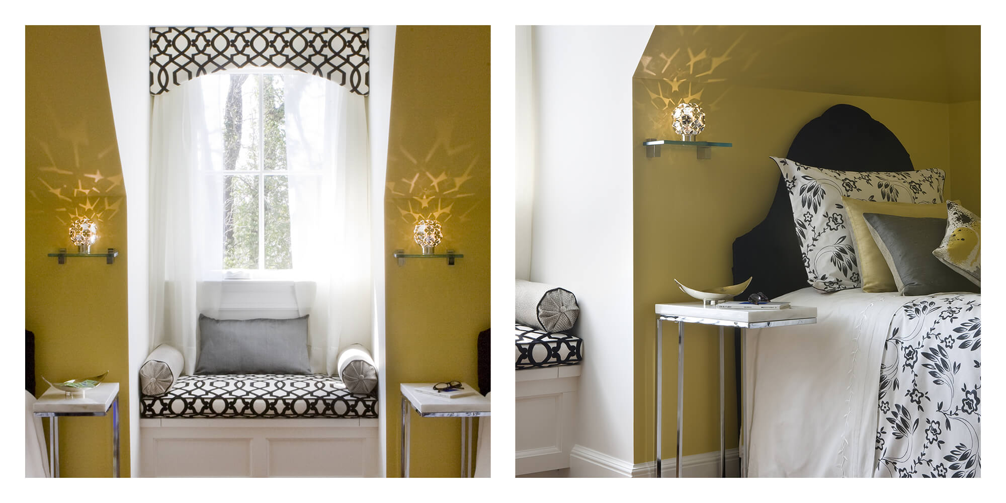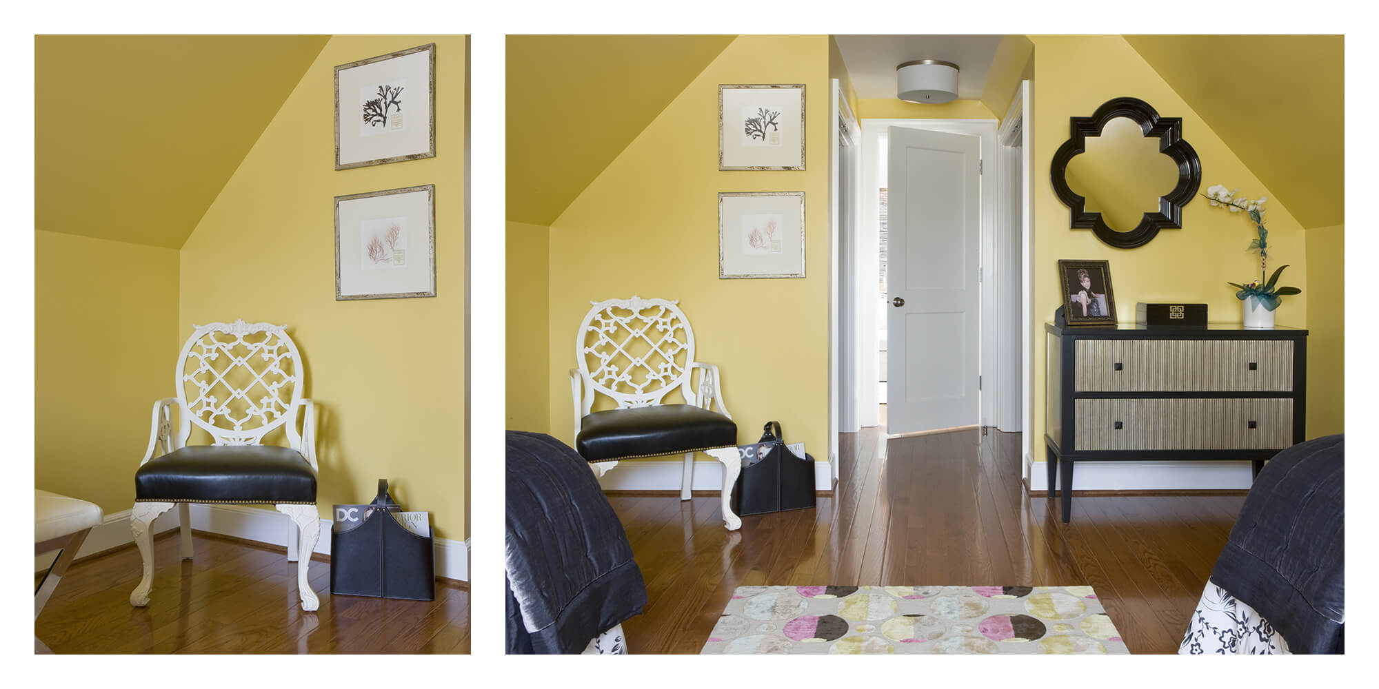 The guest room presented a challenge commonly encountered by many attics—a space with an awkward shape. Overcoming its small dimensions required efficient design to create functionality and aesthetics. The pitched roof and eaves introduced geometric complexities, demanding innovative solutions for a harmonized look. The single dormer with a south-facing window presented a challenge in maximizing natural light. Low ceiling heights further affected both aesthetics and functionality. Additionally, installing appropriate fixtures and wiring for sconces added complexity. Despite these challenges, the design aimed to transform the attic into a visually appealing and functional space, requiring creative thinking, technical expertise, and meticulous planning. Our goal was to address spatial constraints, architectural intricacies, limited natural light, low ceilings, and lighting needs for a successful and cohesive attic transformation.